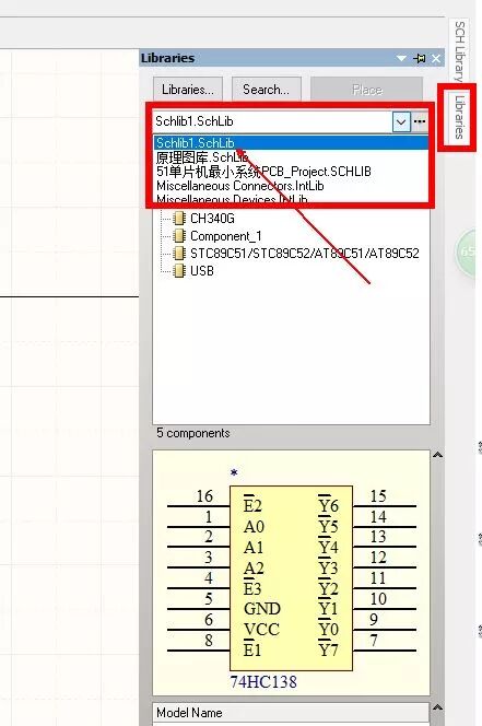 3-在右侧的Library标签下,选择对应要修改的库,本例选择Schlib1.SchLib。