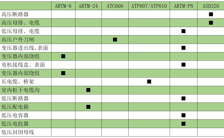 四、安科瑞ATE无线测温系统能够在高、低压电力系统中对各电气节点的温度进行准确有效地监测,确保电力系统安全、稳定、可靠地运行。为此,我司为客户提供一套完善的温度监测方案。在高、低压电力系统中对各电气节点的温度进行准确有效地监测,确保电力系统安全、稳定、可靠地运行。主要监测对象和使用设备如下表:
