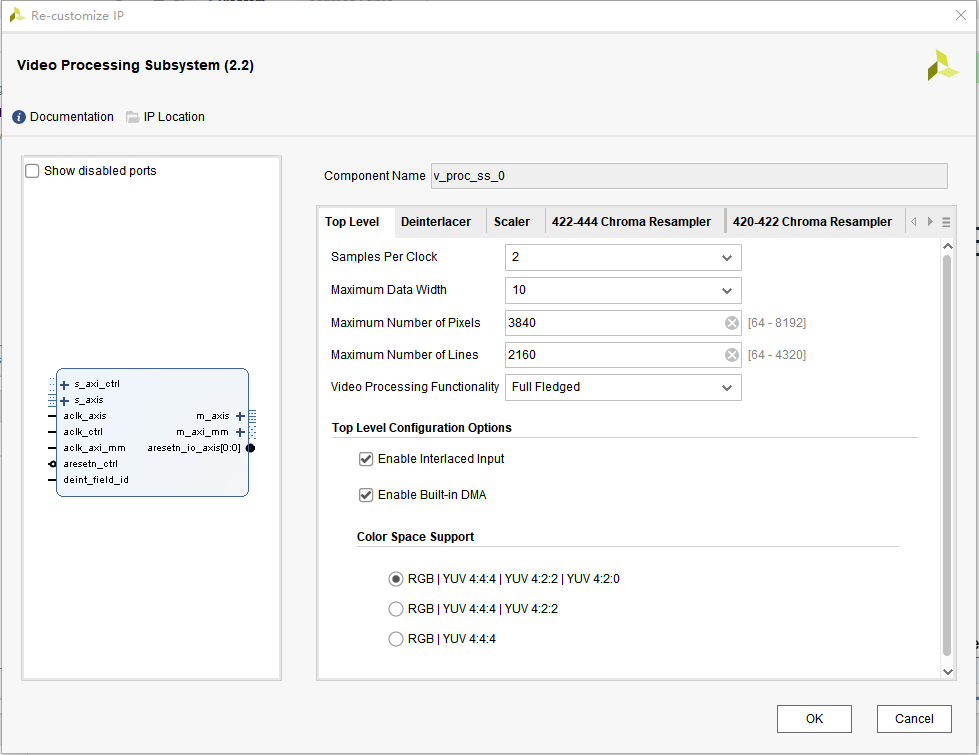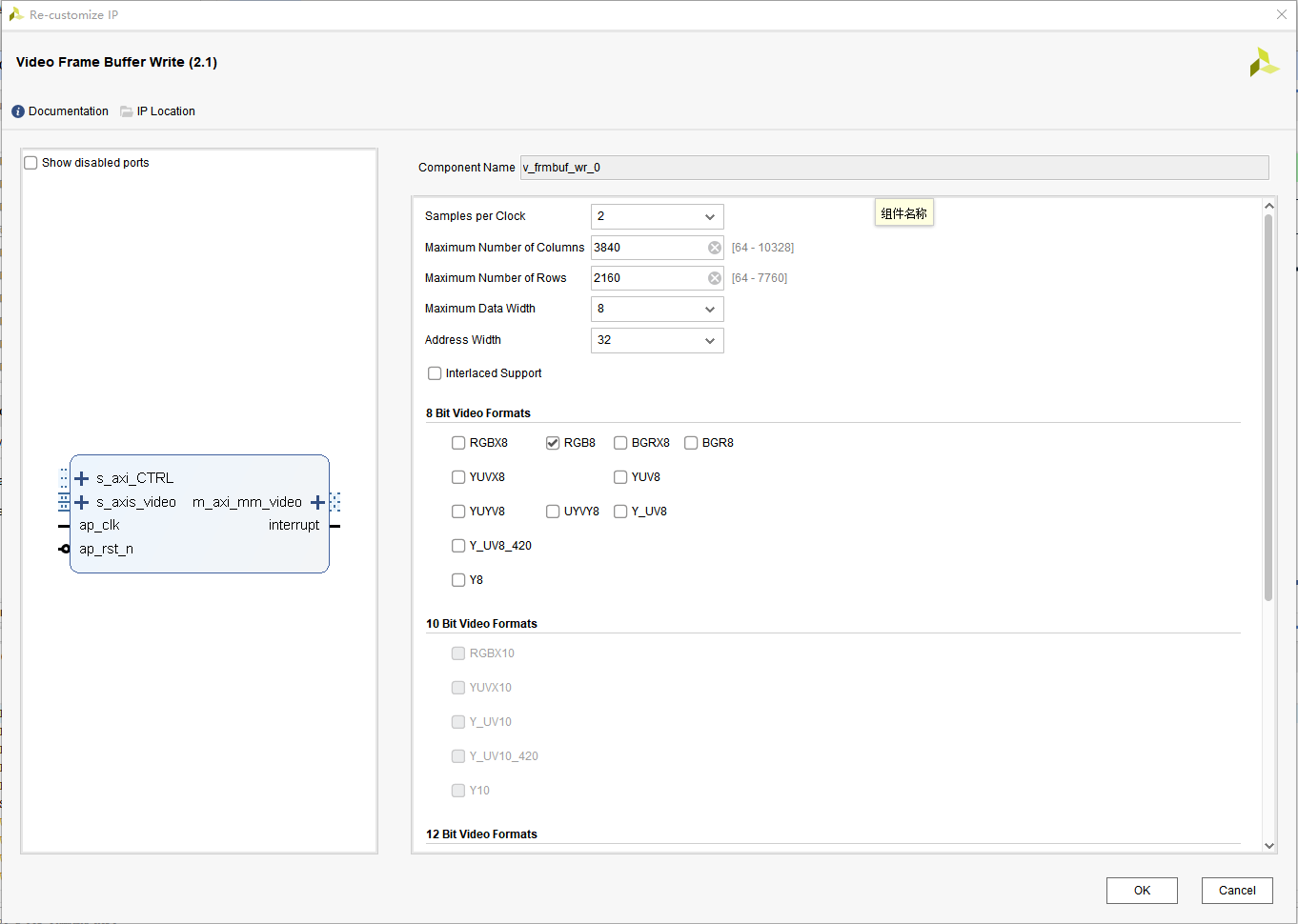 3.视频缓存:使用Video Frame Buffer Write IP核将视频写入DDR4。