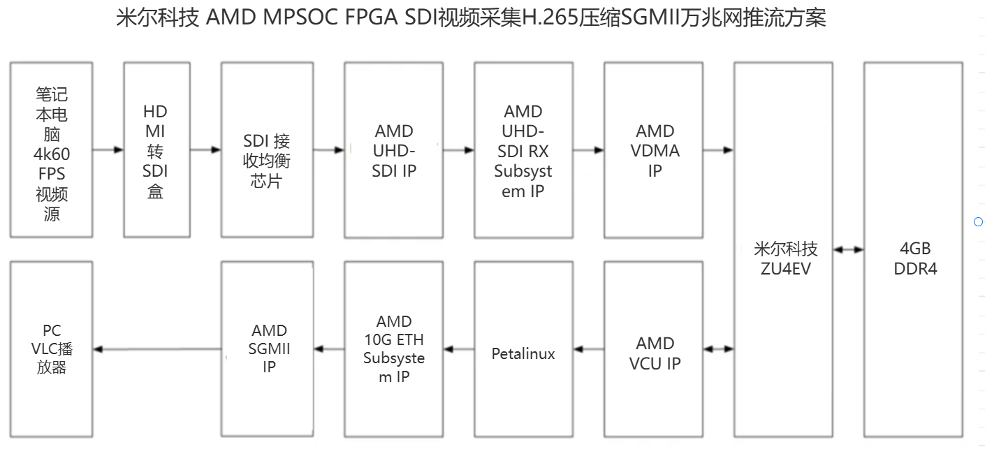 在米尔电子MPSOC实现12G SDI视频采集H.265压缩SGMII万兆以太网推流