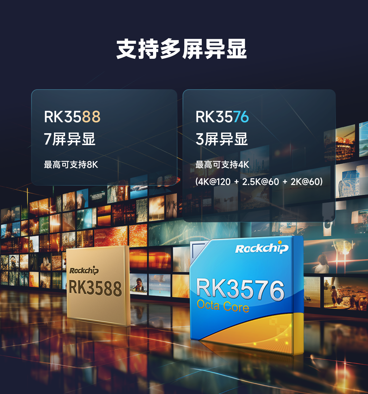 支持多屏异显两者都支持多屏异显和各种常见的显示接口。RK3576最多支持3屏异显和最高可支持(4K@120 + 2.5K@60 + 2K@60),具有HDMI v2.1/ eDP v1.3组合接口、MIPI DSI 4通道、DP v1.4和USB 3.0组合(Type - C)接口等多种接口。RK3588最高可以支持7屏异显和支持8K,具有双HDMI2.1/eDP V1.4组合接口、双MIPI - DSI TX 4通道以及双DP v1.3嵌入USB 3.1且带有音频和HDCP2.x。