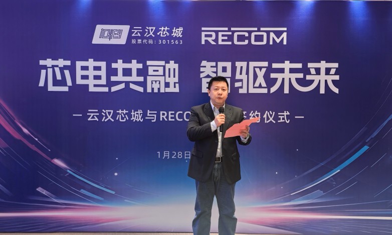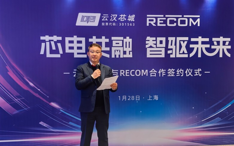 1月28日,云汉芯城(股票代码:301563)与全球知名创新型全栈电源解决方案提供商RECOM达成合作,成为RECOM大中华区首家线上代理平台!双方以“芯电共融,智驱未来”为主题,隆重举行合作签约仪式。合作签约仪式上,云汉芯城授权分销业务中心高级副总裁毕风雷先生与RECOM董事总经理Harry Gu先生共同签署合作协议。此次合作将深度融合RECOM在全栈电源技术领域的专业积淀与完善的产品矩阵,以及云汉芯城在电子产业供应链数字化服务、本土化技术支持和广泛市场覆盖方面的核心能力,携手构建更完整、高效、敏捷的电源解决方案服务体系。