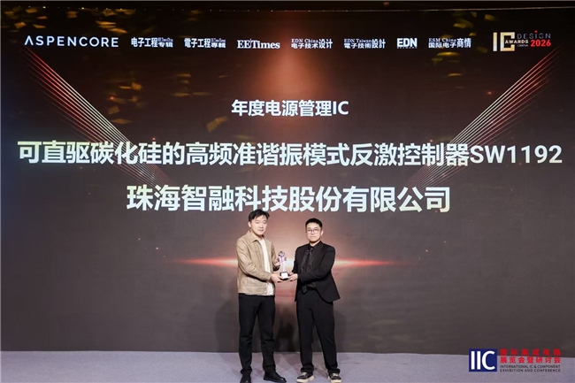 【2026年4月1日,中国上海】在由AspenCore主办的IIC Shanghai - 2026国际集成电路展览会暨研讨会期间,珠海智融科技股份有限公司重磅产品可直驱碳化硅(SiC)高频准谐振模式反激控制器SW1192。凭借领先的技术创新、成熟的量产能力与优异的系统表现,SW1192还获选为2026年度中国IC设计成就奖之热门IC产品奖:年度电源管理IC。该控制器专为离线式反激电源、PD快充充电器、电源适配器等场景量身打造,是国内首款面向消费级市场、可直驱SiC MOS管的专用控制芯片,解决了传统将SiC引入中小功率充电器时常见的门极驱动与系统复杂度问题。在填补国内技术与产品空白的同时,也为SiC在消费电子领域规模化落地提供了国产化核心控制方案。
